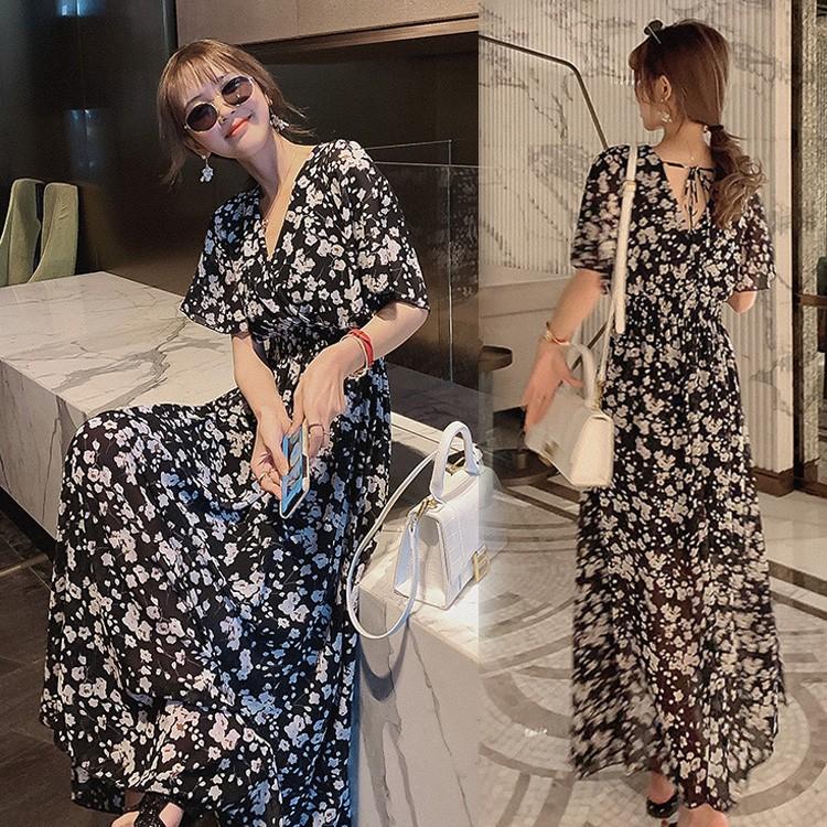 ワンピース レディース 40代ワンピース 春夏 半袖 シフォンワンピース 花柄 マキシワンピース Vネック オシャレ 結婚式ドレス お出かけ 大人 30代 50代 Y2175 Fairyhouse 通販 Yahoo ショッピング